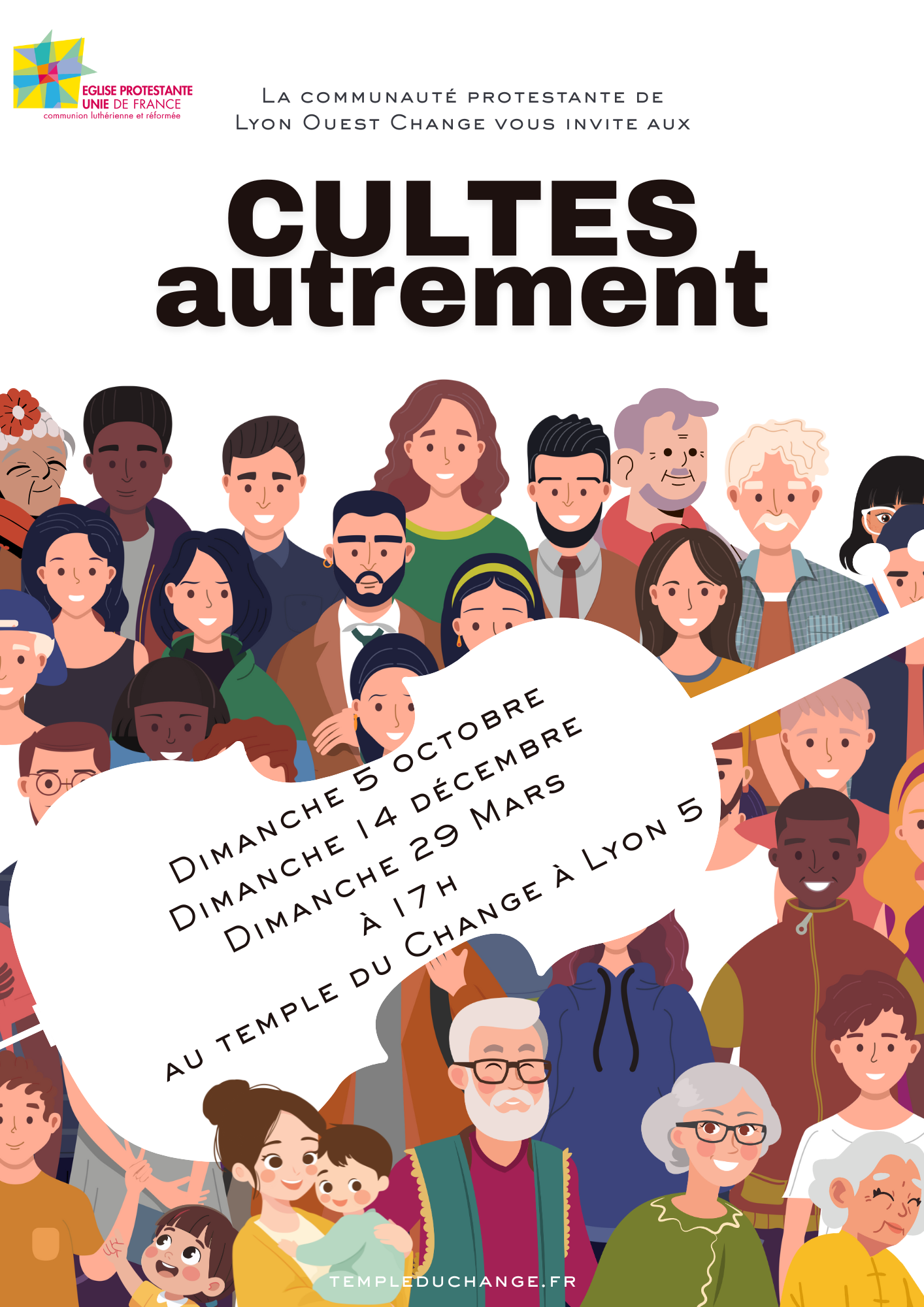 Il y a 3 cultes autrement cette année : le dimanche 5 octobre, le dimanche 14 décembre et le dimanche 29 mars à 17h.